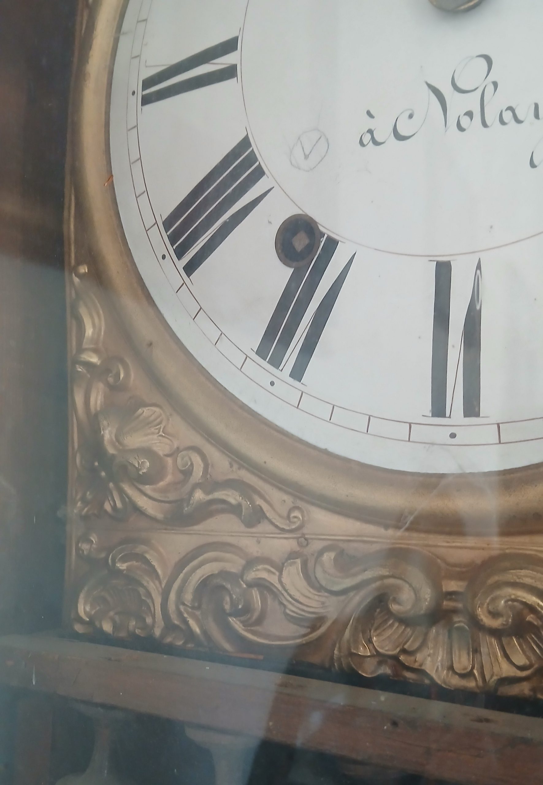 - Descrizione: Antico orologio a torre a pendolo. Questo importante pezzo d’antiquariato è molto antico e necessita di un restauro e una revisione da un specialista nel settore. Realizzato con cassa in legno massello, numeri romani sul quadrante e decorazione centrale in fusione di bronzo. L’oggetto si distingue per la sua linea classica, i materiali di pregio e la ricercatezza dei dettagli decorativi, che ne fanno un importante elemento d’arredo e un testimone dell’arte orologiera dell’epoca.