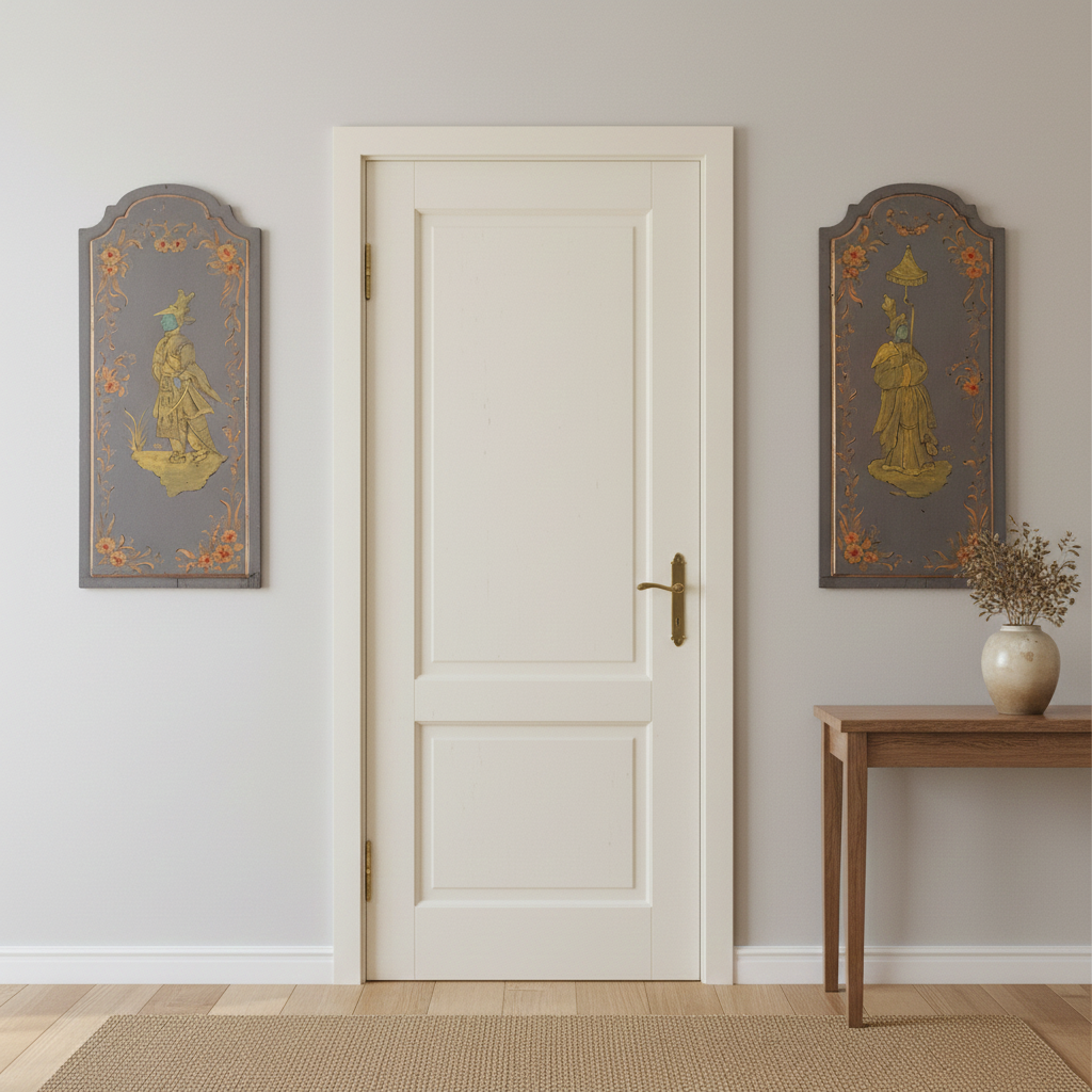 - Descrizione: Raffinata e suggestiva coppia di dipinti realizzati su antiche antine di legno, testimonianza di un gusto d’altri tempi e di una sensibilità artistica legata al fascino dell’Oriente. Le superfici in legno conferiscono ai dipinti un carattere autentico e una presenza decorativa di grande fascino. Nel primo pannello è raffigurato un uomo cinese in abiti da guerriero. La figura indossa una veste cerimoniale impreziosita da motivi ornamentali che richiamano i simboli del potere e della tradizione imperiale. La postura fiera restituiscono un’immagine di forza silenziosa e nobilità d’animo. Il seecondo dipinto ritrae una giovane donna giapponese, delicatamente adornata come per una processione o una cerimonia tradizionale. L’atista cattura con grazia la leggerezza dei tessuti e la serenità del momento creando un’atmosfera sospesa tra realtà e sogno.
