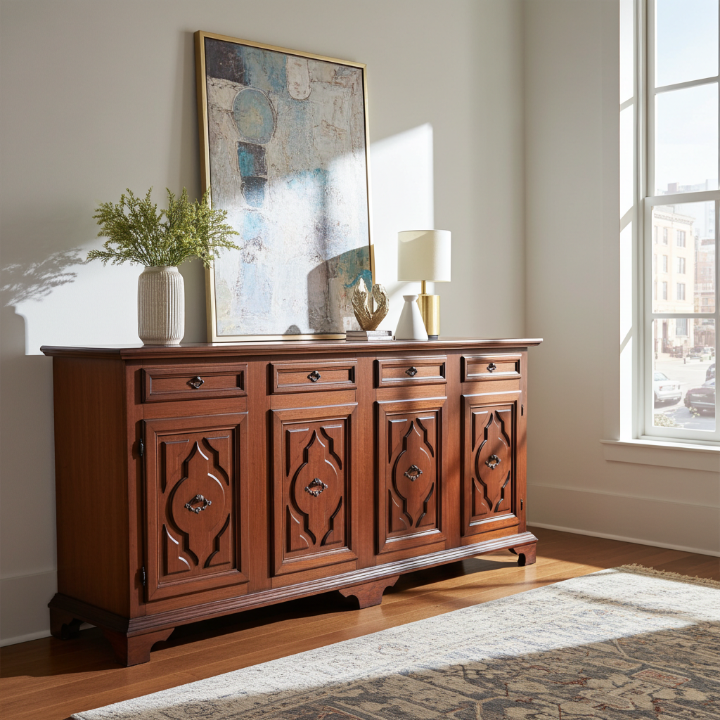 - Uso: È una credenza di grande nobiltà estetica, in cui equilibrio, eleganza e artigianalità si fondono in un’unica armoniosa composizione. Un arredo capace di evocare il gusto raffinato del Rinascimento, impreziosendo qualsiasi ambiente con la sua autorevole bellezza.