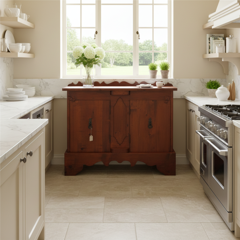 Credenza versatile ed elegante, ideale per ambienti retrò o come elemento di contrasto in contesti contemporanei.