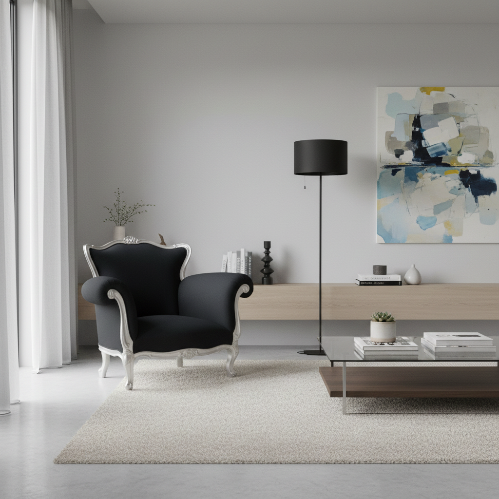 - Descrizione: L’eleganza, la ricchezza, il senso di una morbida lussuosità caratterizzano questa poltrona in legno scolpito e intagliato in parte di sapore barocco veneziano ed in parte di design moderno. La combinazione di un antico intaglio e colori decisi ne fanno un oggetto di carattere ed unico. La sua presenza in una sala, sia in un contesto moderno o classico, da un tocco di originalità, scombinando un arredo prevedibile. Le parti in legno dipinte in argento contrastano con il tessuto di telo grezzo scuro, facendo risaltare il finissimo lavoro di intaglio rigorosamente eseguito a mano, opera di sapienti artigiani d’altri tempi.