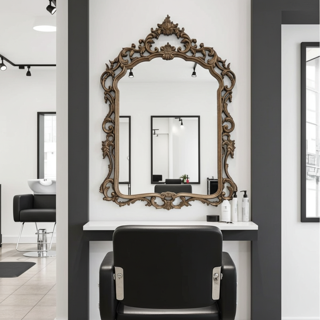 - Descrizione: Questo grande specchio con cornice in stile francese del Settecento si presenta come un magnifico esempio di maestria artigianale e raffinatezza decorativa, rievocando con fedeltà il gusto opulento e teatrale dell’epoca rocaille. La cornice, interamente intagliata a mano, mostra la delicatezza del gesto artistico e la precisione di una lavorazione che conserva l’autenticità e lo spirito estetico delle antiche specchiere piemontesi. Ogni curva, voluta e traforo della cornice appare modellato con attenzione, secondo un ritmo sinuoso e armonico che cattura lo sguardo e invita a seguirne la danza ornamentale. Le forme fluide e asimmetiche rivelano la loro origine elegante nella leggerezza dei motivi naturalistici.