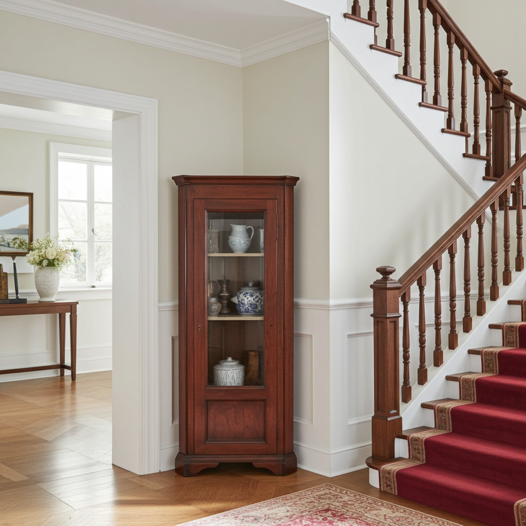 - Descrizione: Mobile angoliera in legno massello si distingue per la sua presenza solida e armoniosa, capace di valorizzare qualsiasi ambiente grazie alla sua linea classica e al suo carattere artigianale. La struttura si innalza su piedi solidi che conferiscono stabilità e un senso di equilibrio visivo. La parte superiore, a giorno, è impreziosita da una vetrina luminosa che permette di esporre oggetti, cristallerie o collezioni con eleganza. La mensole interne, rivestite da un tessuto delicato, aggiungono un tocco di ricercatezza. La sezione inferiore, chiusa, offre uno spazio contenitivo discreto e funzionale, ideale per custodire elementi che richiedono ordine e riservatezza. A completare la struttura, una splendida cornice in legno intagliato avvolge l’angoliera con un carattere rustico ma raffinato, richiamando la tradizione dei mobili d’epoca e conferendo al pezzo un fascino senza tempo.