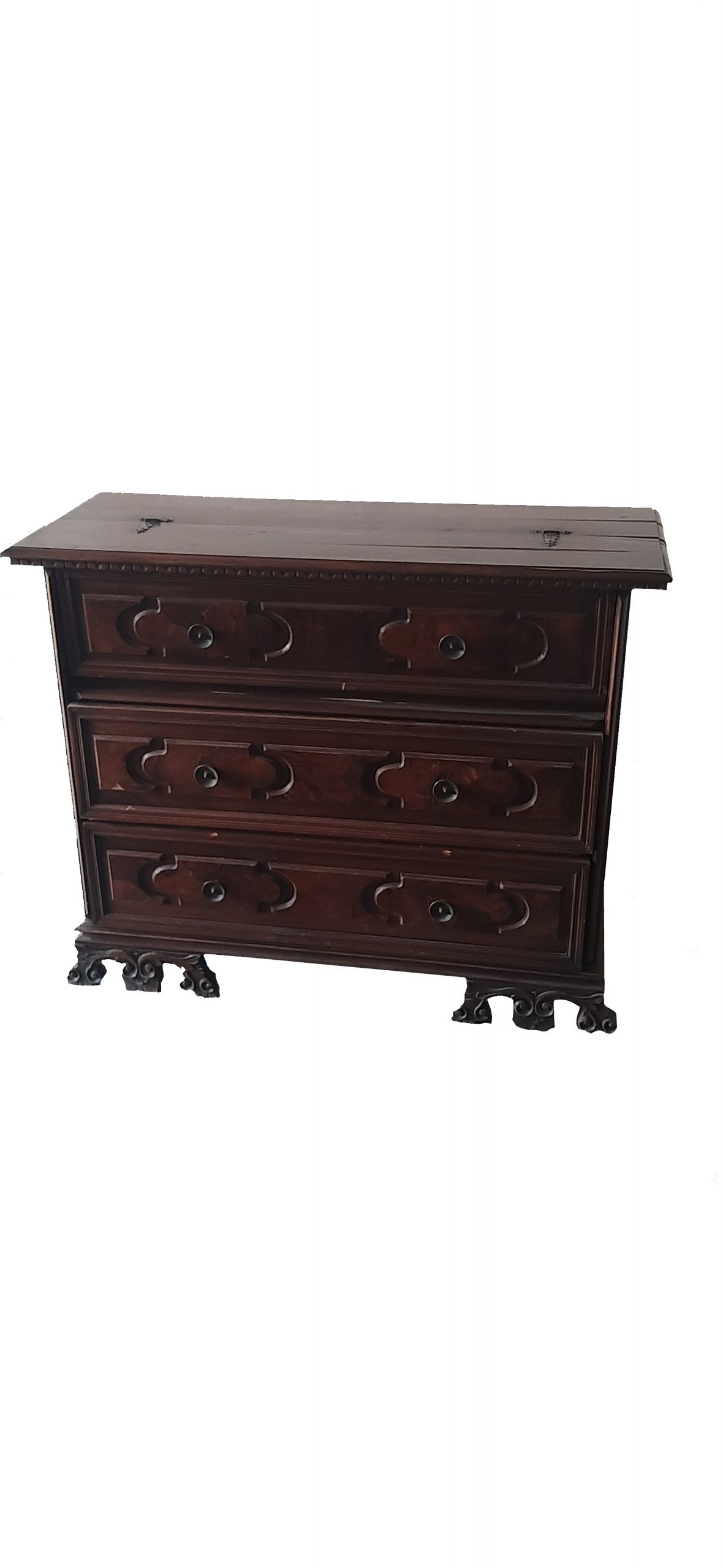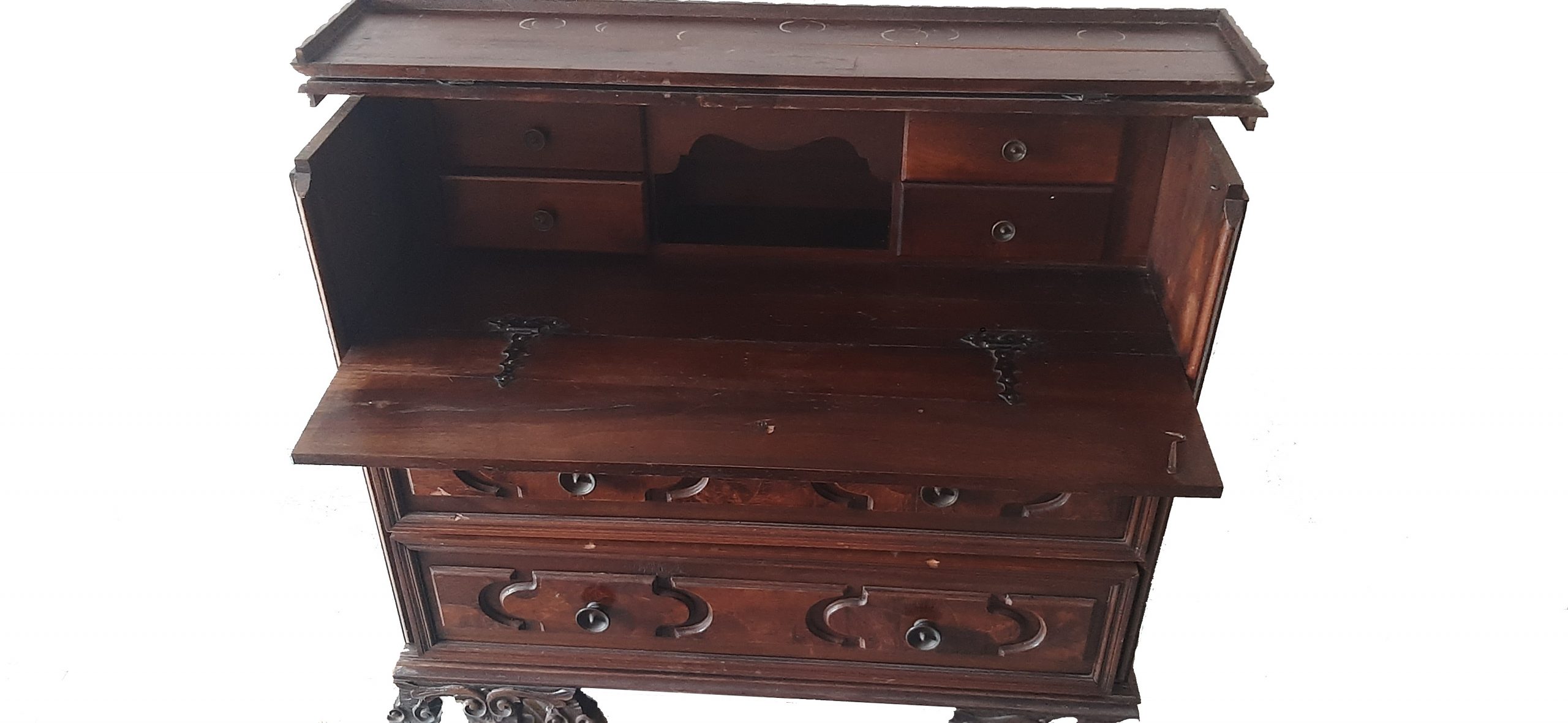 - Descrizione: Canterano antico con scrittoio a ribalta intagliato a formelle in legno, si distingue per il suo fascino e la sua funzionalità. Questo mobile realizzato in mobile massello rappresenta una scelta ideale per arredare i propri spazi con eleganza e praticità allo stesso tempo. Il piano apribile a metà cela il primo cassetto a calatoia con una serie di cassetti per poter conservare materiali di cancelleria, documenti, gioielli o anche piccoli dispositivi elettronici. Dotato di quattro cassettini con pomelli, perfetti per piccoli oggetti, nella parte superiore mentre nella parte inferiore troviamo due ampi cassetti.