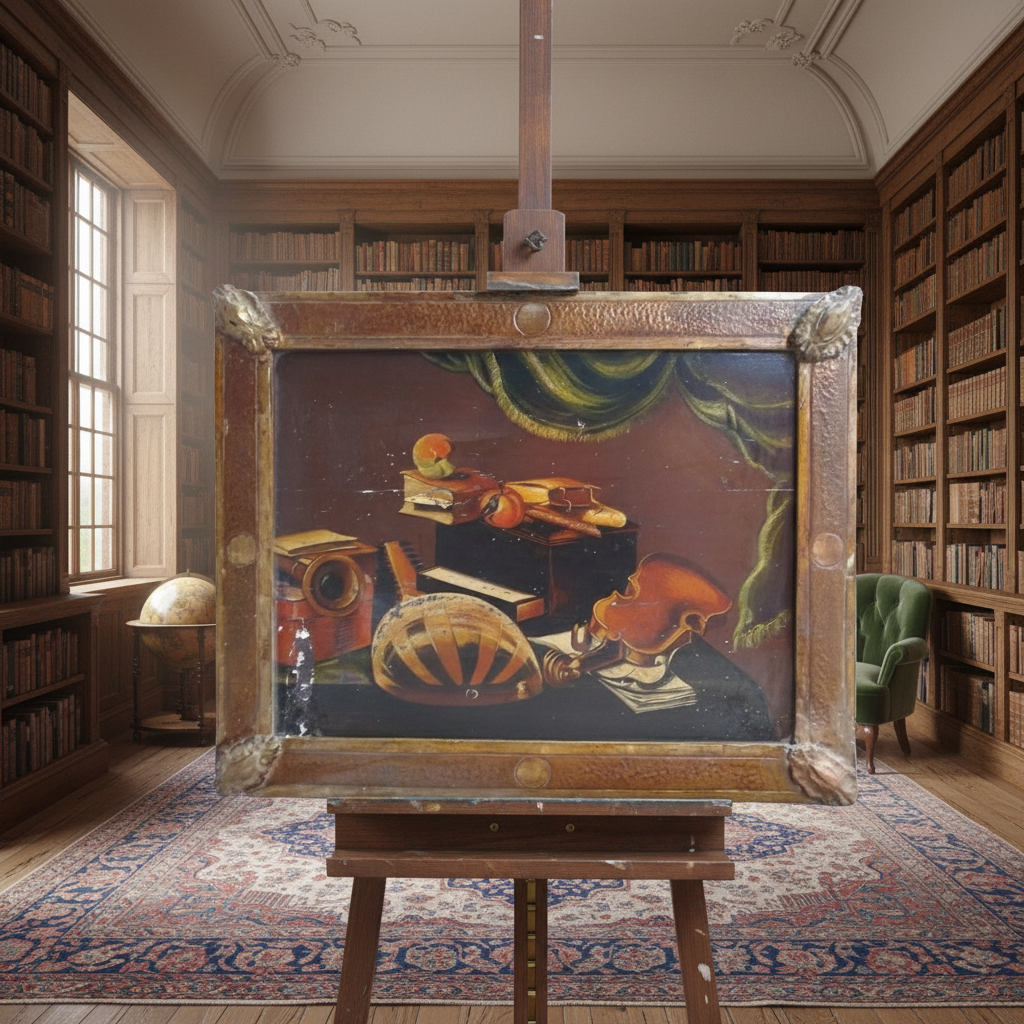 - Epoca e tecnica di produzione: Quadro vintage copia pittore Accardi strumenti musicali, pur essendo una copia del XX secolo, non si limita a riprodurre meccanicamente il modello, ma ne rievoca lo spirito con gusto, rigore e rispetto per l’originale. È una testimonianza di quella tradizione di copisti e studiosi dell’arte che contribuirono a tramandare i capolavori della pittura italiana del Seicento.