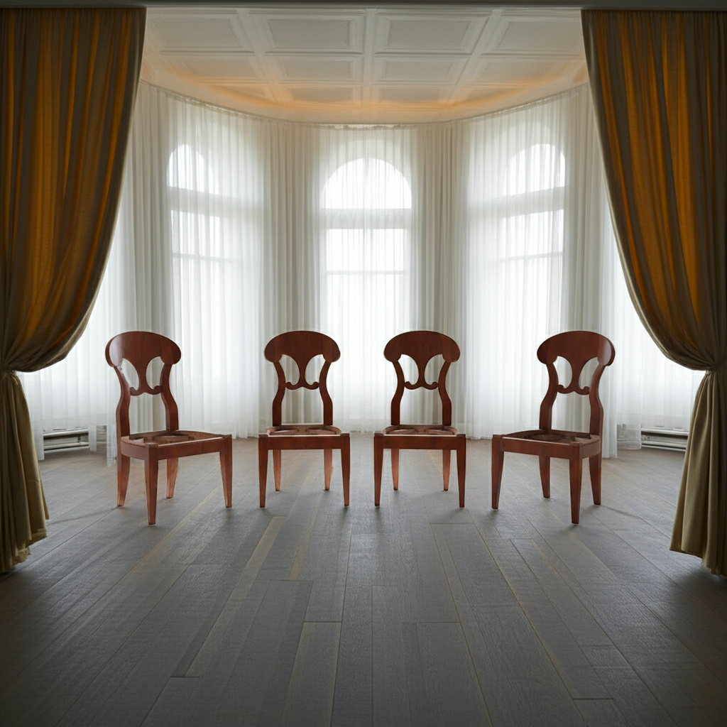 - Descrizione: Splendido set composto da quattro sedie in stile Biedermeier, autentiche testimoni dell’eleganza sobria e raffinata tipica della prima metà dell’Ottocento. La sedie sono state accuratamente restaurate rispettando i canoni stilistici originali, preservando la patina e la bellezza del legno. Realizzate in legno massello con impiallacciatura in noce, si distinguono per le linee pulite e armoniose, lo schienale sagomato e le gambe rastremate, elementi che conferiscono leggerezza visiva e un’eleganza intramontabile. La finitura naturale mette in risalto la calda venatura del noce, esaltandone la nobiltà e la profondità cromatica. Su richiesta, è possibile personalizzare le sedute con un’imbottitura realizzata dal nostro tapezziere di fiducia, scegliendo tra una selezione di tessuti pregiati per ottenere un risultato raffinato e confortevole. Contattaci e sarà nostra cura inviare le campionature dei vari tessuti e il prezzo è da concordare.