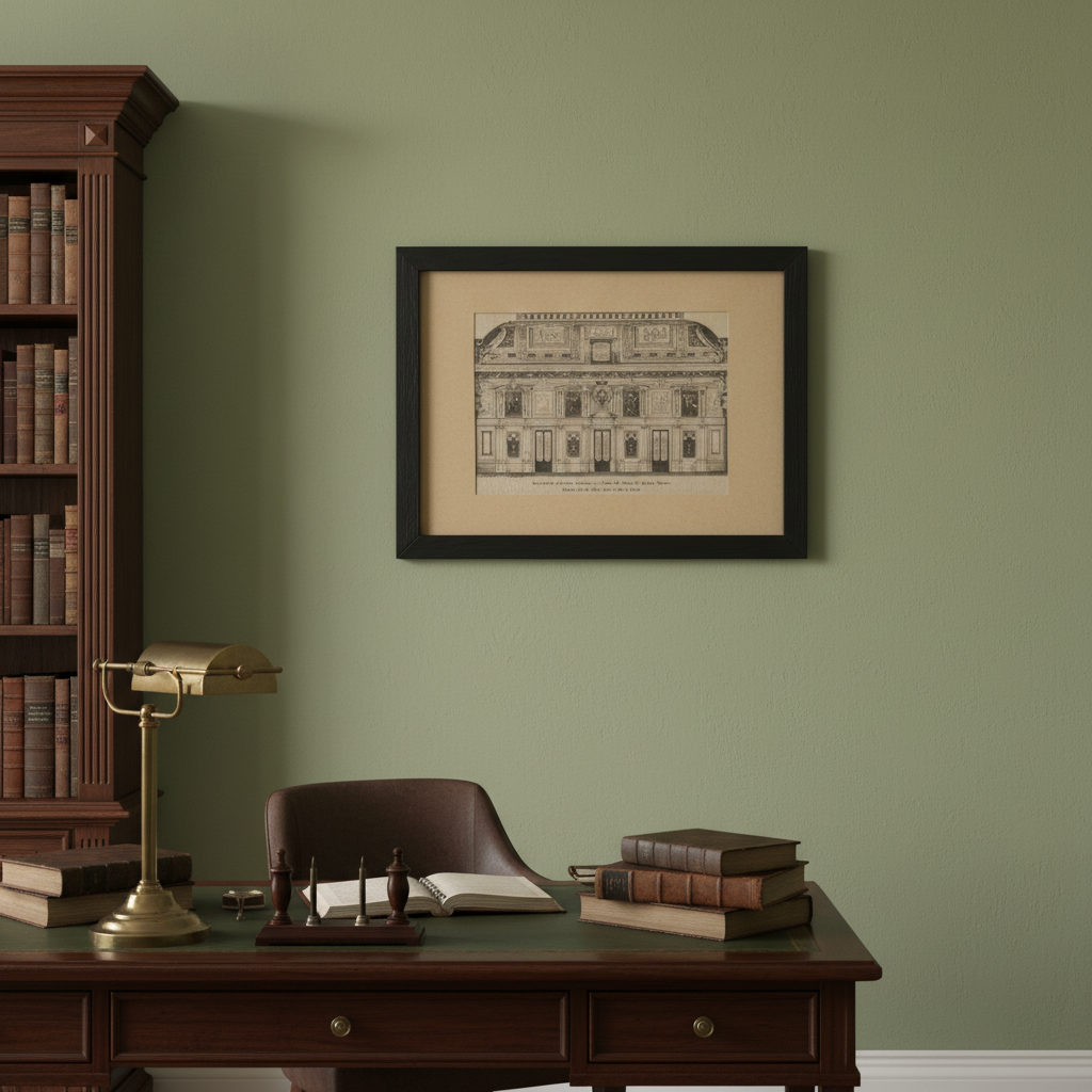 Stampa antica con cornice, parete di Palazzo Marino Milano