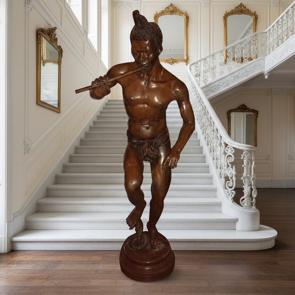 - Uso: Statua in bronzo “il suonatore”. Opera di grande fascino e imponenza, perfetta per ambienti classici, collezioni d’arte o spazi espositivi, dove saprà imporsi come elemento di forte personalità e rara eleganza.