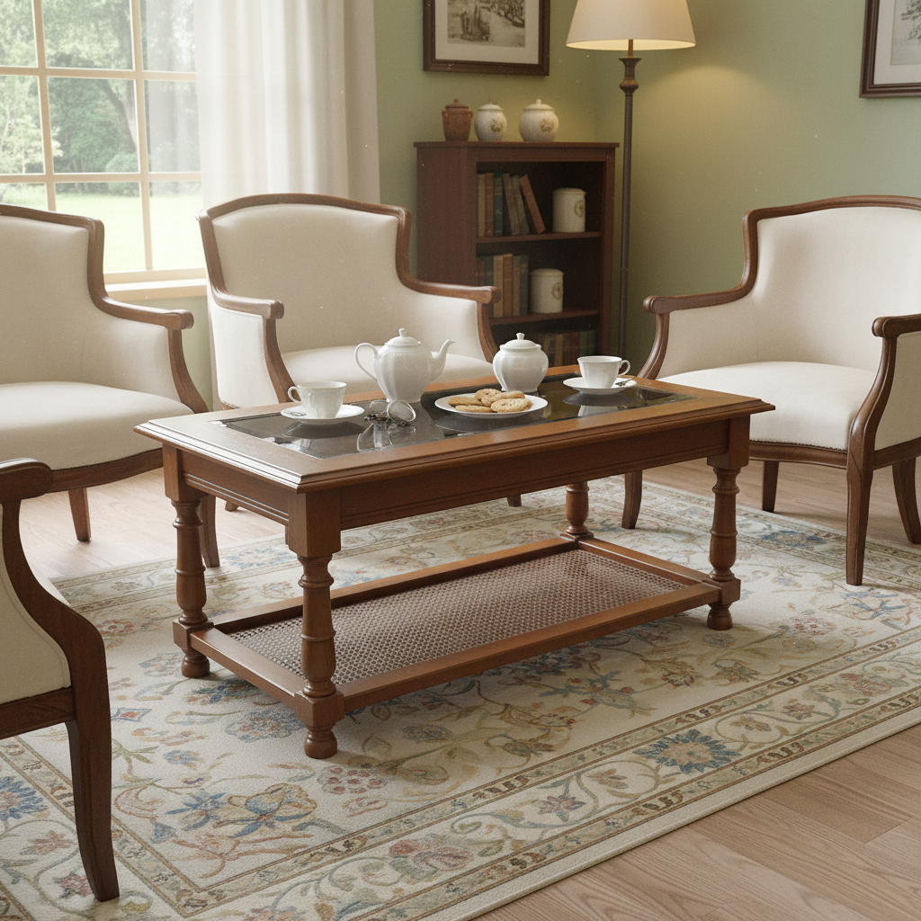 - Descrizione: Tavolino da salotto in stile classico, realizzato in legno finemente lavorato e caratterizzato da una raffinata struttura a due piani, che unisce equilibrio estetico e funzionalità. Il piano superiore, dalla forma rettangolare e proporzionata, presenta un inserto centrale in vetro trasparente, sapientemente incassato nella cornice lignea. Questo dettaglio conferisce leggerezza visiva al mobile, permettendo di apprezzare la bellezza del ripiano inferiore e donando al complesso un effetto di trasparenza e luminosità. Il ripiano inferiore, elegantemente traforato e intagliato, è il risultato di un lavoro artigianale di precisione, che unisce armonia delle forme e finezza decorativa. Esso offre una pratica superficie d’appoggio per riviste, libri o oggetti d’arredo, arricchendo la composizione di un piacevole ritmo visivo e funzionale. Un oggetto che testimonia la cura artigianale e la qualità dei materiali, capaci di impreziosire ogni ambiente con discreta eleganza e armoniosa presenza