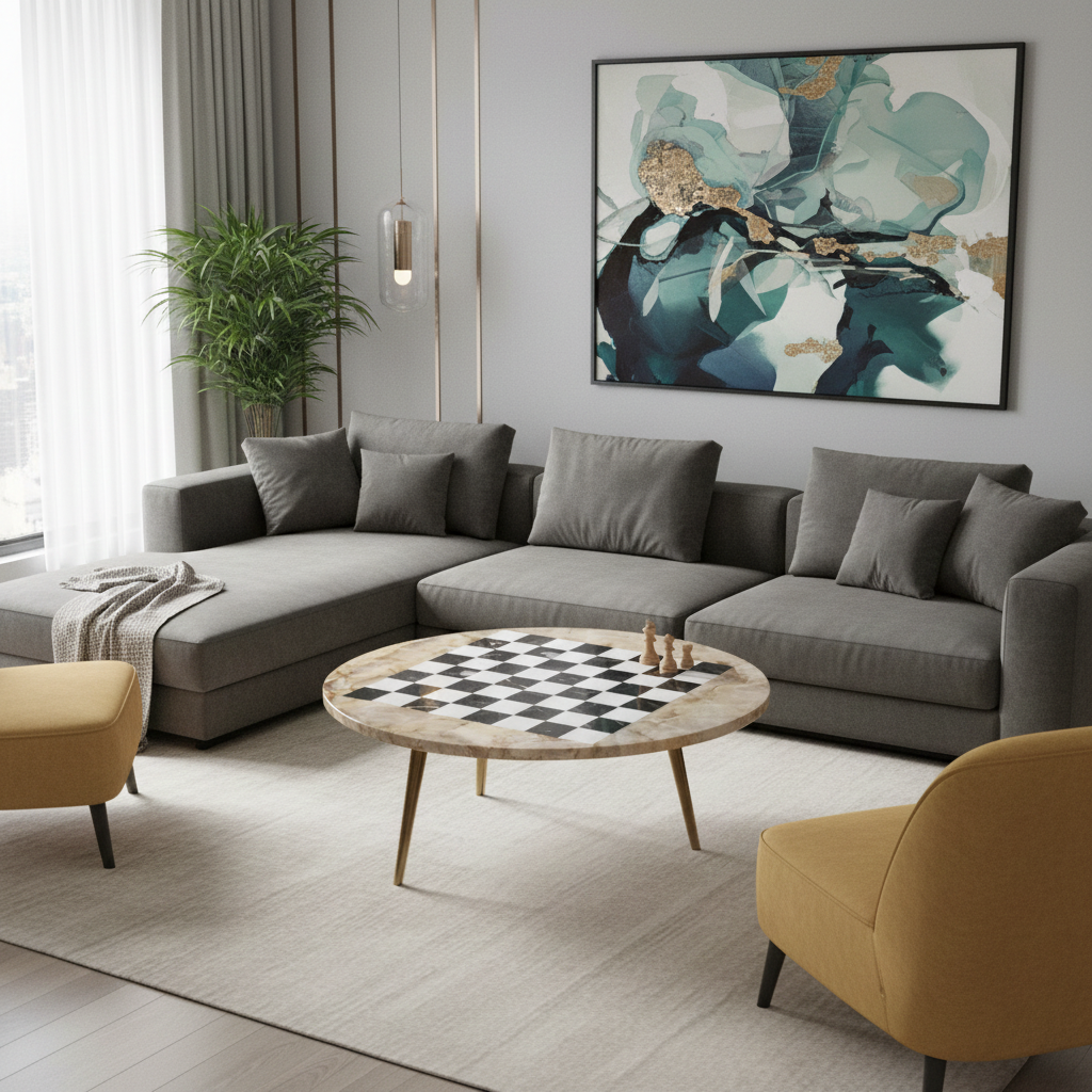 La superficie, pensata per il gioco degli scacchi, unisce funzionalità ed estetica, con un risultato elegante e contemporaneo adatto a diversi tipi di ambienti.